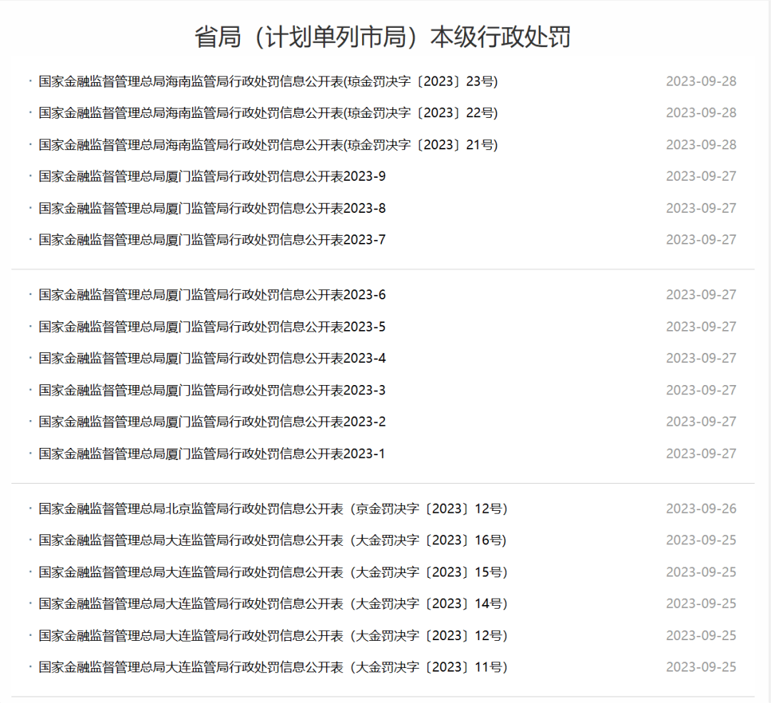 9月27日,国家金融监管总局一口气公开了厦门监管局开具的8张行政罚单,有8家厦门本地或驻厦金融机构及相关责任人被处罚款1300多万元。