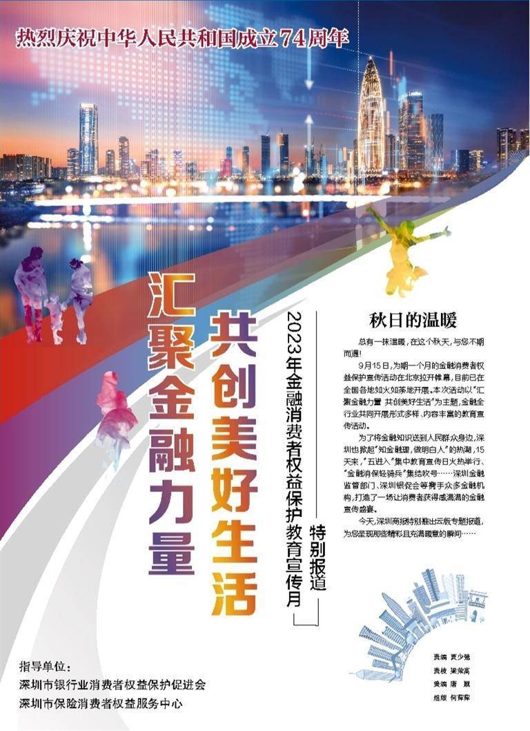 9月15日,为期一个月的金融消费者权益保护宣传活动在北京拉开帷幕,目前已在全国各地如火如荼地开展。本次活动以“汇聚金融力量 共创美好生活”为主题,金融全行业共同开展形式多样、内容丰富的教育宣传活动。