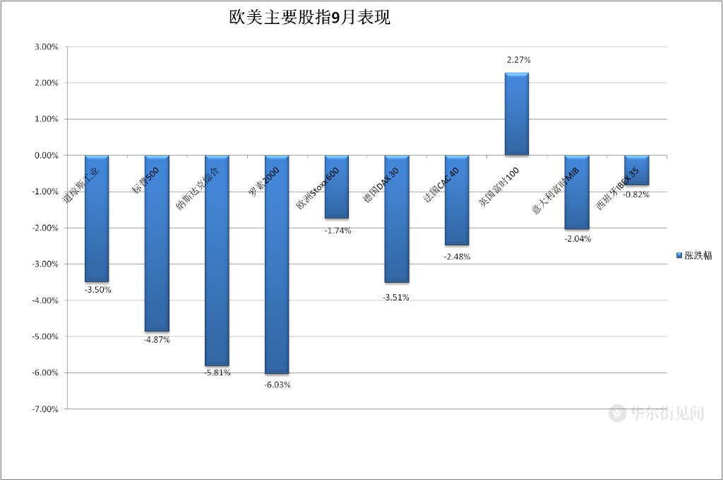 本周斯托克600指数和各国股指连跌两周。9月斯托克600指数和多国股指均连跌两月,而英股9月一枝独秀,涨超2%,在8月回落后反弹。
