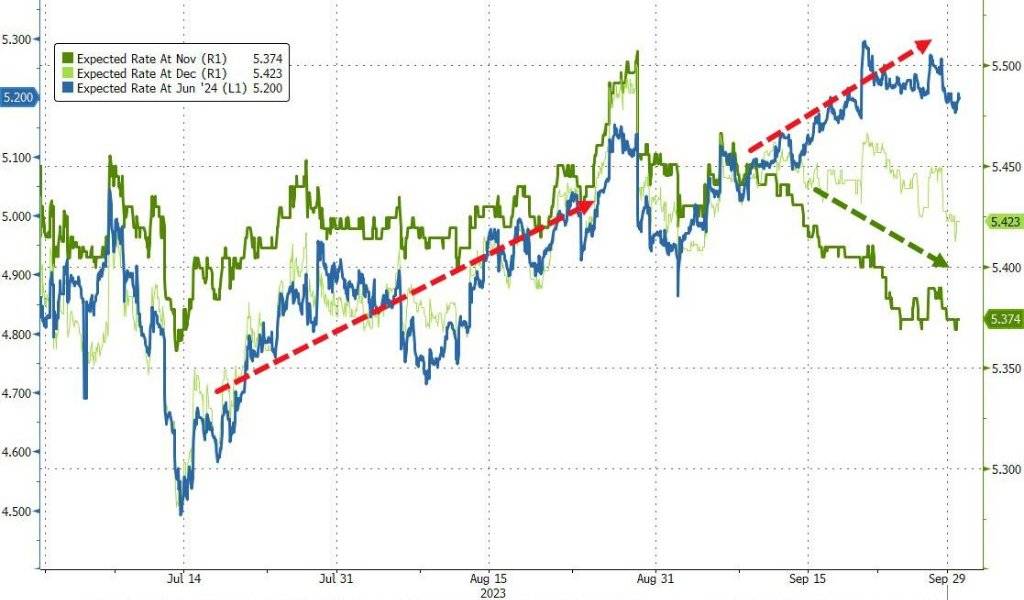 整个三季度,市场对美联储今年加息的预期基本未变,但对明年降息的预期明显“退烧”