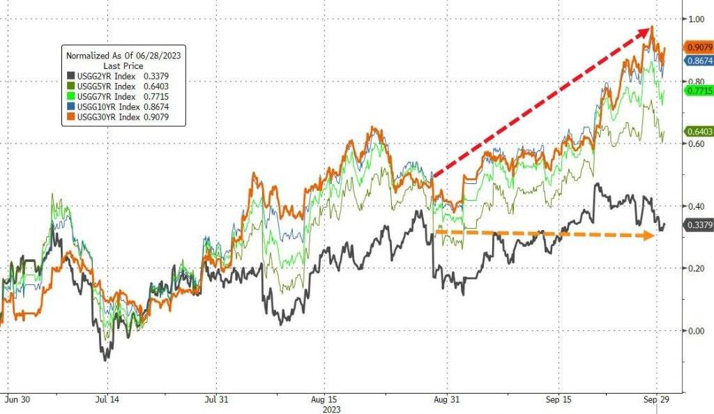 各期限美债收益率9月总体攀升,短债收益率本周震荡回落