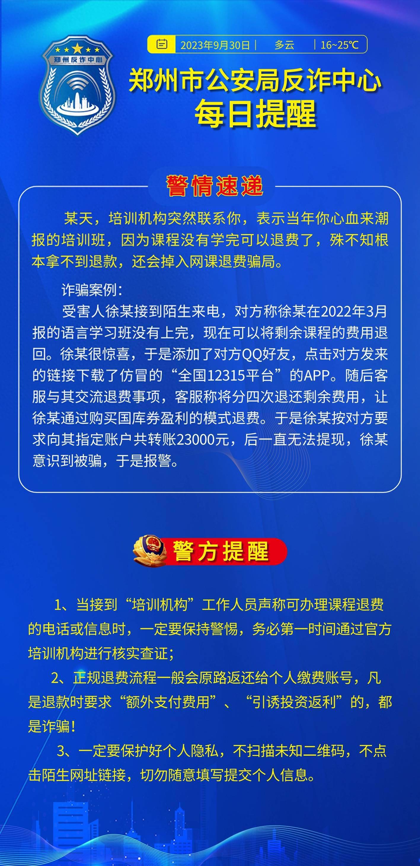 郑州市公安局反诈中心每日提醒