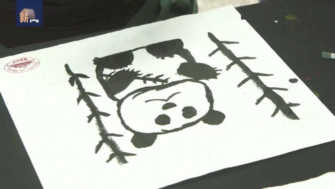 ↑9月30日,在美国华盛顿史密森学会国家动物园,游客体验大熊猫主题书法活动。