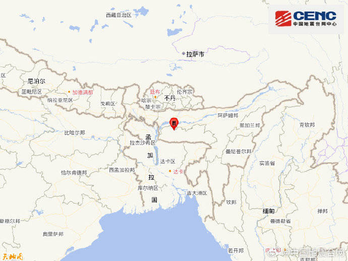 中国地震台网正式测定:10月02日20时45分在印度(北纬25.75度,东经90.65度)发生5.0级地震,震源深度30千米。