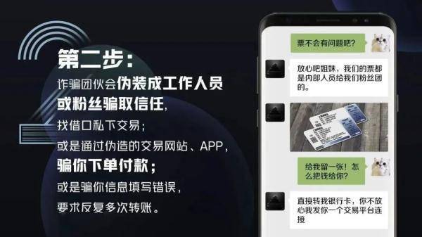 当前,线下演唱会、体育赛事等文娱演出市场火爆。诈骗团伙就利用群众急切的购票需求,谎称自己是票务内部人员或拥有独家购票渠道。待被害人付款后,便以各种理由不交付门票或交付假门票,以达到骗取钱财的目的。