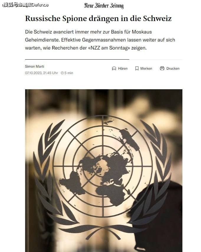 《新苏黎世报》援引瑞士联邦情报局的数据报道称,瑞士境内约有80名俄罗斯间谍,占俄罗斯在欧洲间谍总数的约五分之一,不过,瑞士政府“不会以驱逐外交官的形式实施任何制裁”,并补充说必须保留与俄罗斯的沟通渠道。
