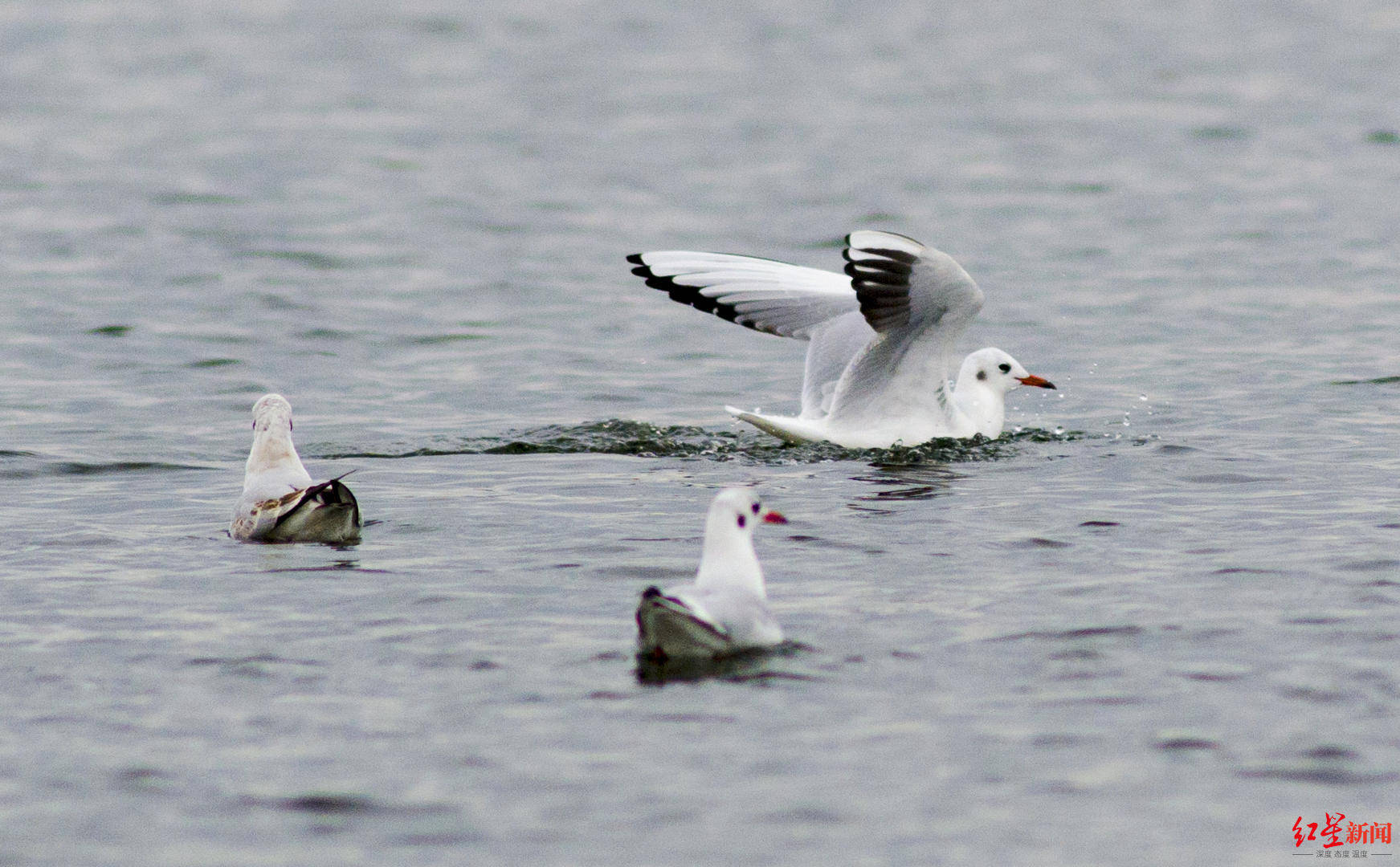 “快看,那个是不是红嘴鸥!”“今年来得有点早哟!”10月12日上午,成都东部新区三岔湖的湖面上,成群的水鸟引来了市民围观——三岔湖迎来了今年第一批迁徙过境候鸟。