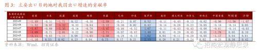 美国、日本、欧盟、韩国、东盟、巴西、南非、澳大利亚、加拿大、新西兰、中国香港、阿联酋对我国出口增速的贡献率持续为负,但多数均出现收窄现象,分别为-1.49%、-0.31%、-1.71%、-0.30%、-2.59%、-0.21%、-0.11%、-0.45%、-0.13%、-0.02%、-0.96%、-1.56%,前值为-1.52%、-0.97%、-3.22%、-0.64%、-2.12%、-0.30%、-0.14%、-0.28%、-0.23%、-0.05%、-0.18%、-0.14%;英国对我国出口的贡献率由负转正,为0.12%,前值为-0.33%;沙特对我国出口的贡献率由正转负,为-1.07%,前值为0.05%;印度、俄罗斯对我国出口拉动依然较强,对我国出口贡献率分别为0.07%、0.52%,前值为0.02%、0.42%。