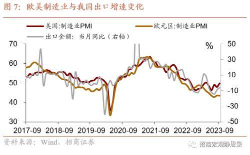 10-12月份,出口增速跌幅继续大幅收窄并回到0值以上是大概率事件。主要论据如下:一是美国制造业PMI持续爬升,欧元区制造业PMI有企稳信号;二是去年同期基数较低;三是今年我国出口份额优势仍存,并未出现较大幅度下滑。对于进口,国内工业复苏节奏已逐渐从政策端转向内生端,四季度内生修复会带动工业需求继续回暖,进口增速跌幅同样会进一步收窄。
