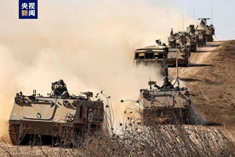 △当地时间13日,以色列陆军步兵战车被部署在加沙边境。