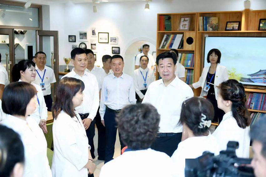 “年年春华秋实,岁岁桃李芬芳。”随后,左毅一行参观了校园,来到阅览室,走进正在备课的三年组语文教师团队之中,其中有从教40年以上的张彦亮老师,从教36年的王红老师和陈淑波老师,她们仍在从事班主任工作和一线教学工作,左毅对老教师们数十年扎根基础教育工作表示感谢,学校老中青结合的教师梯队成长促进学校的发展,对老师们厚实的专业底蕴,务实的教学之心以及满腔的教育热情给予肯定和赞扬,勉励老师们认真工作,努力做“四有”好教师,体现出殷殷育人之心和拳拳教育情怀。