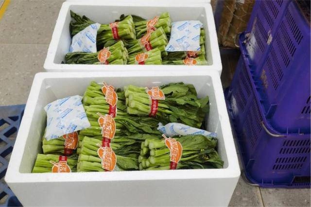 凌晨十二点,一辆辆装货完毕的运输车从钱大妈仓库有序出发,沿着他们熟悉的路线前往钱大妈华南区各门店。出库5个小时之后,随车出发的供港尖叶菜心在经过专业的全程冷链物流运输之后,顺利抵达钱大妈门店。等候已久的店员们立即忙碌地理货、上架、陈列,一排排摆放整齐、包装精美的供港尖叶菜心开始等待到店街坊们进行挑选购买。